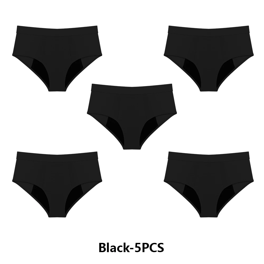 Set of 5 for Convenience: This pack includes 5 pairs of menstrual panties, giving you ample coverage throughout your cycle, with easy washing and reuse.