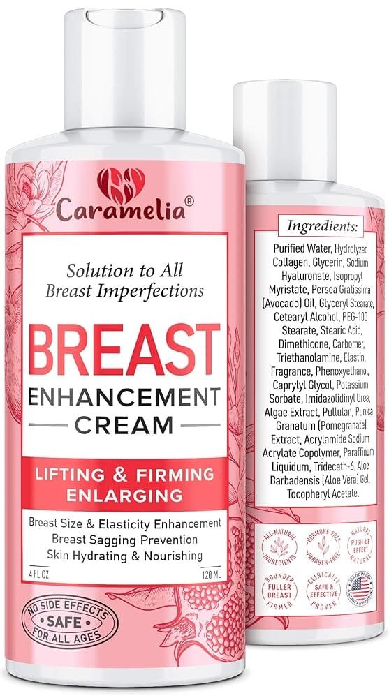 - Breast Enlargement Cream – Caramelia Breast Enhancement Cream is your secret key to natural-looking bigger and fuller breasts! Its active ingredients promote breast increase while providing a firming and lifting effect helping you to avoid wasting a fortune on implant surgeries.