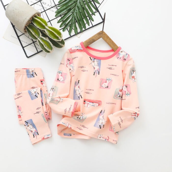 Children’s Clothing Girls Cute Printing Long-sleeved Home Wear, Big Children’s Thin Cotton Pajamas Set