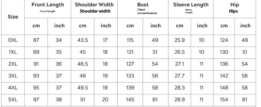 Size: 0XL,1XL,2XL,3XL,4XL,5XL