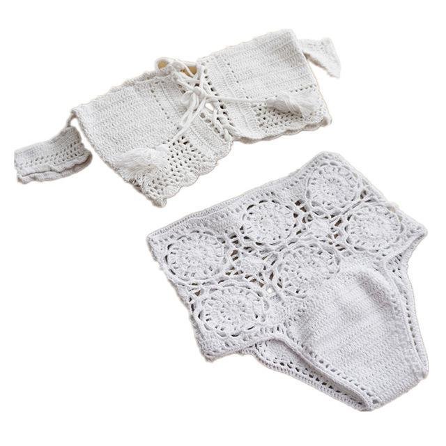 Knitted Swimwear Women Bikini Set Off Shoulder Swimsuit Bandeau Swimming Suit for Women Bandage High Waist Bathing Suit