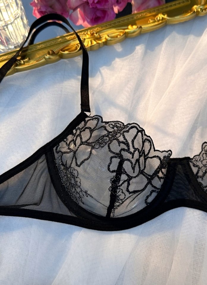 New Black Perspective Embroidery Sexy Slim Shaping Sex Underwear Split Set